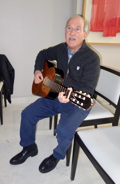 Manolo Alabart fou l’encarregat de la part musical. A la foto, afinant la guitarra.